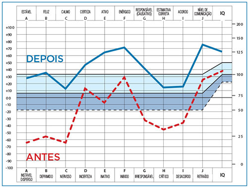 Muitas das pessoas que seguem os cursos recomendados têm como resultado um melhoramento no gráfico de comportamento e no QI.
